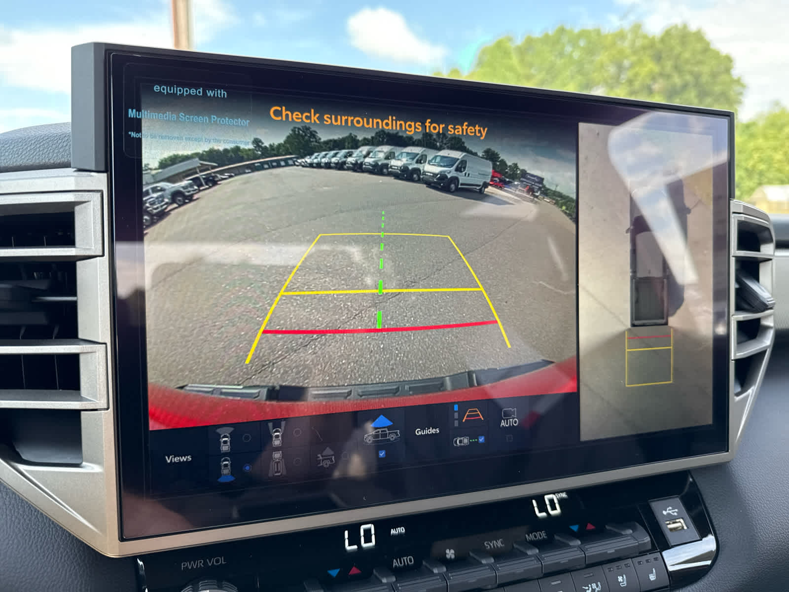 94. The Panoramic View Monitor does not provide a comprehensive view of the area surrounding your vehicle. Look around to confirm clearance. See Owner’s Manual for limitations.