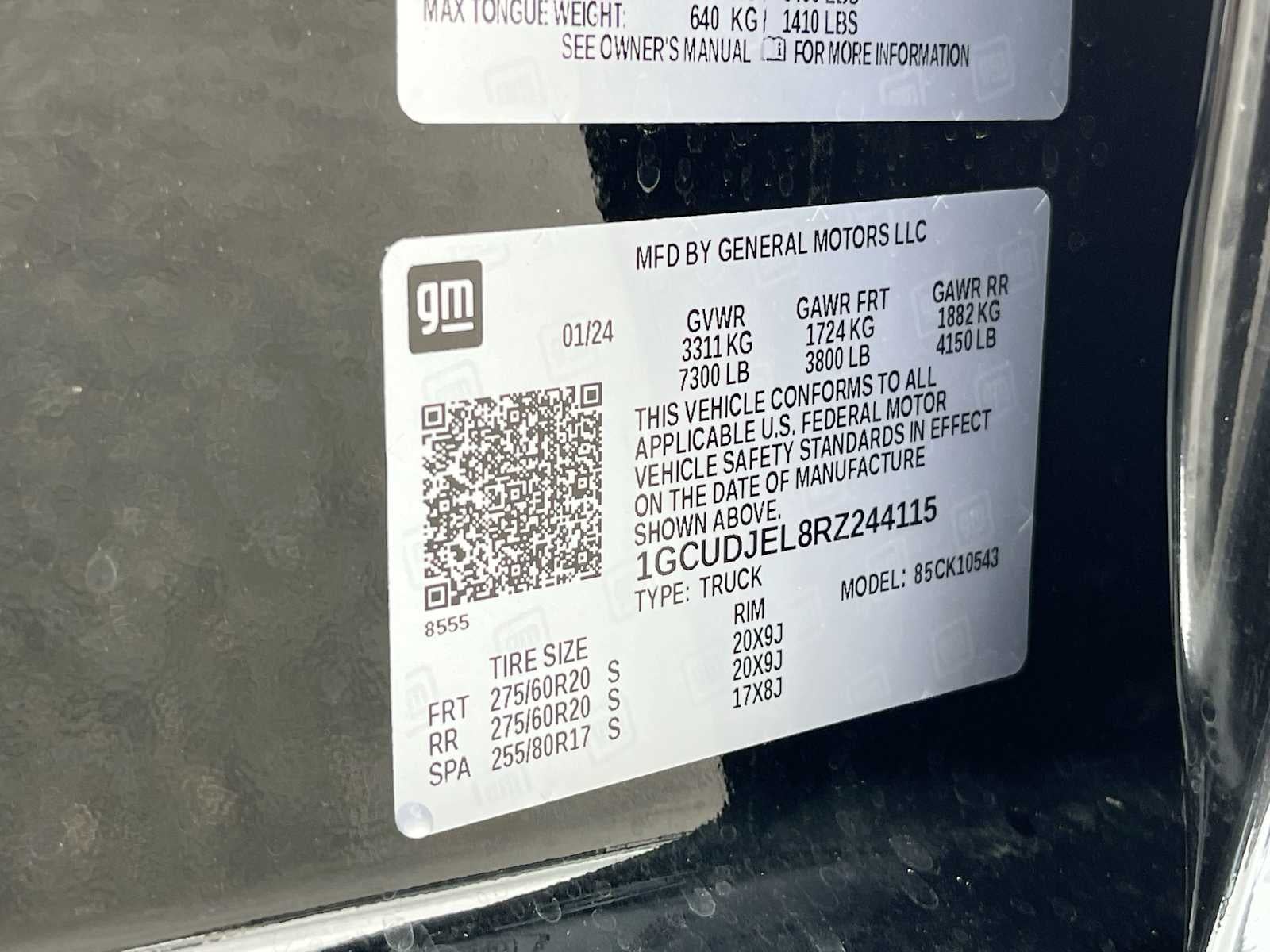- Front Tire Size: 275/60R20SL